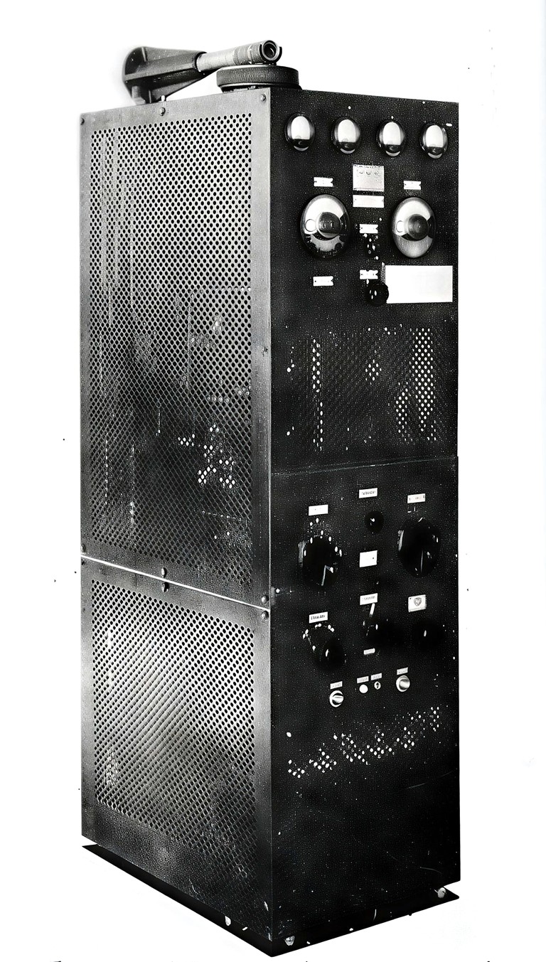The Great Lakes Cruise ships the SS South American, SS North American and the SS Alabama each had a RMCA ET-8031 system to support multichannel AM transmission and receiving. The system had 6 receivers, a motor-generator power supply, and a coil switching transmitter housed in a large cabinet. The system was operated from a control panel that could be located anywhere on the ship. Tom Drake who served as radio op on these vessels provided the 8031 control head and cabinet images that are shown below. They are from the manual for this system.